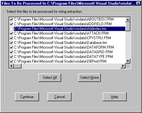.VBP file. You have the ability to deselect individule files in the project that you don't want to be processed. Deselecting a file will prevent any of its hard-coded strings from being moved to the resource file.